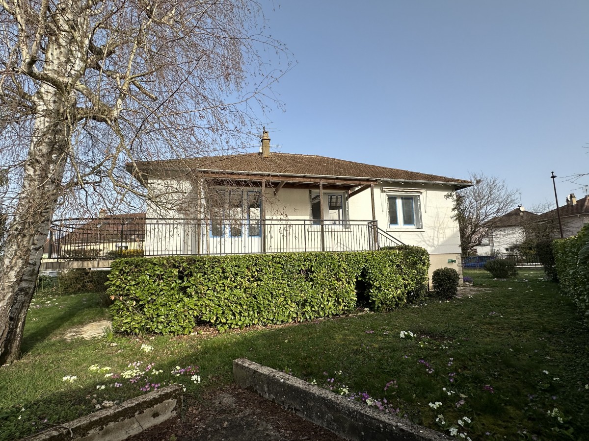 AUXERRE Périphérie, bourg tous commerces, pavillon F4 comprenant : entrée, salon-séjour, cuisine équipée, 3 chambres, salle de bains. Chauffage gaz. Sous-sol total avec F2. Terrain clos et arboré de 606 m².